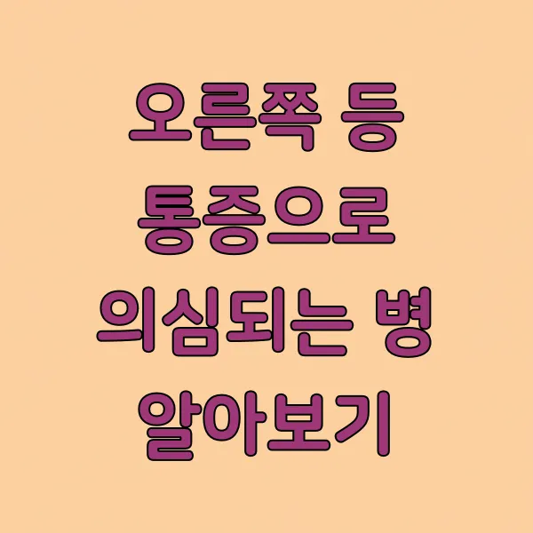 이런 통증은 단순히 불편함을 넘어, 때로는 우리 몸이 보내는 중요한 건강 신호일 수 있어서 주의 깊게 살펴볼 필요가 있어요. 그래서 오늘은 오른쪽 등 통증을 유발할 수 있는 여러 가지 질환들을 함께 알아보고, 어떤 경우에 병원을 찾아야 하는지 정확하게 안내해 드릴게요.