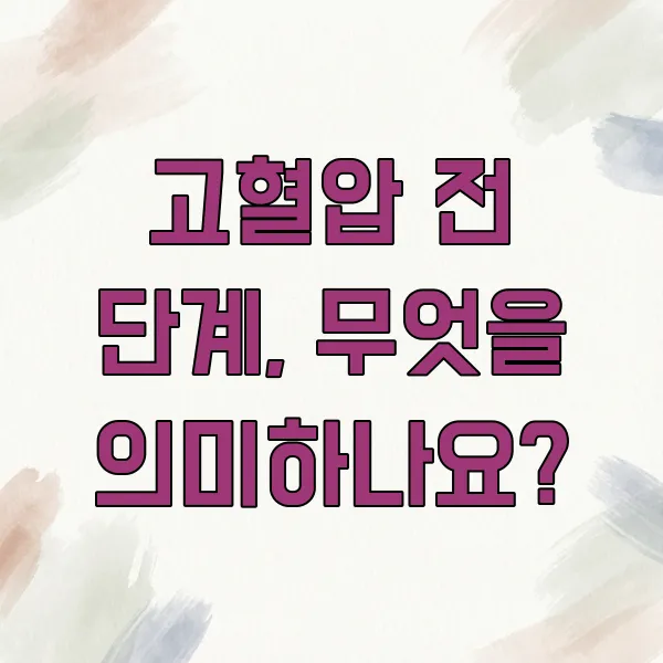 고혈압 전 단계는 수축기 혈압 120~139mmHg, 이완기 혈압 80~89mmHg 사이를 의미해요. 이 상태는 아직 고혈압은 아니지만, 정상 혈압보다 높은 수치로 앞으로 고혈압으로 진행될 가능성이 있다는 경고 신호로 볼 수 있어요. 이 시기에 적극적인 생활 습관 개선이 매우 중요하답니다.