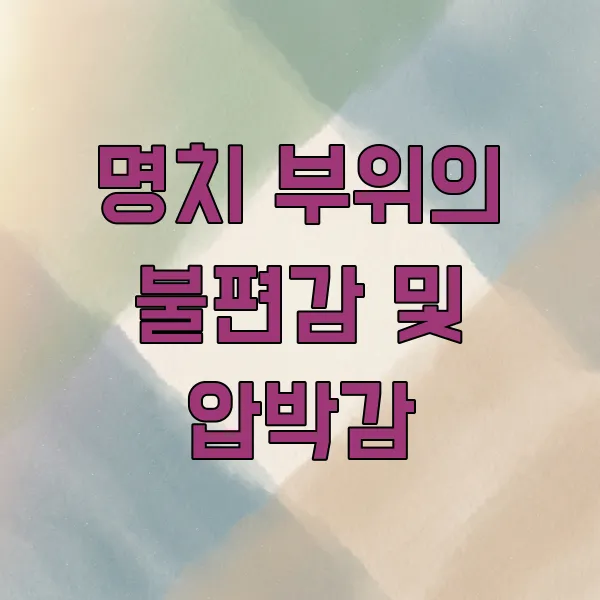 통증과는 조금 다르지만, 명치 부위에 묵직한 느낌이나 무언가 꽉 눌린 듯한 압박감 을 느끼는 경우도 많습니다. 답답하고 불편한 느낌이 지속되어 신경 쓰일 수 있어요.